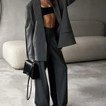 Todelt gråt patchwork blazer- og buksesæt til kontoret