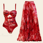 Todelt sæt: grøn nederdel med rynker og udskæringer