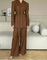 Todelt kontorsæt: brune bukser med V-hals og snørebånd