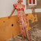 Todelt sæt med en nederdel med retroprint og V-hals
