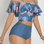 Todelt sæt med blomsterprint, åben ryg og flæsestropper.