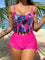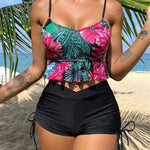 Todelt sæt med flæser og blomsterprintet snøre i siden