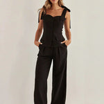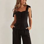 Todelt, smalt ærmeløst kontorsæt i sort bomuld