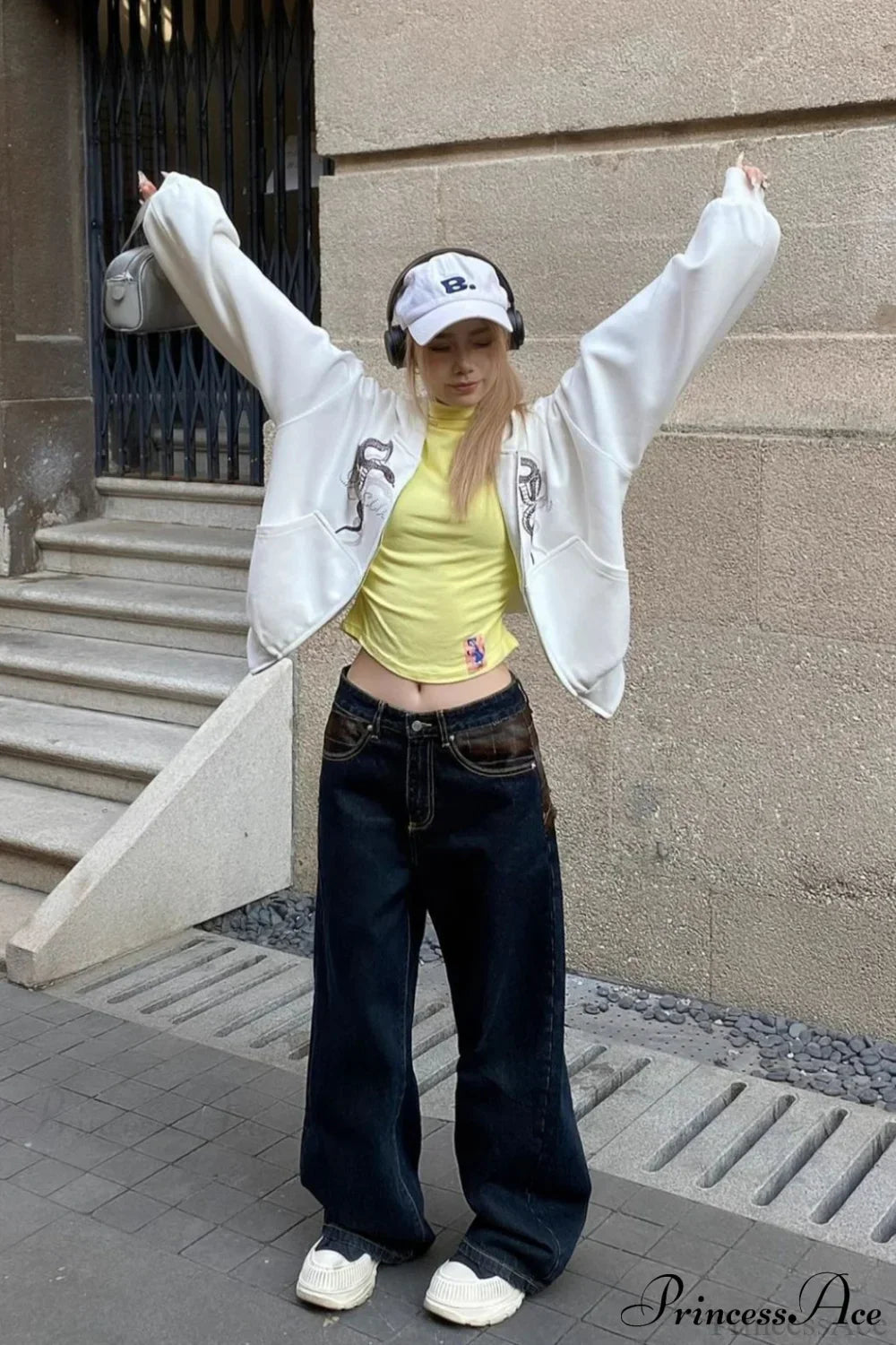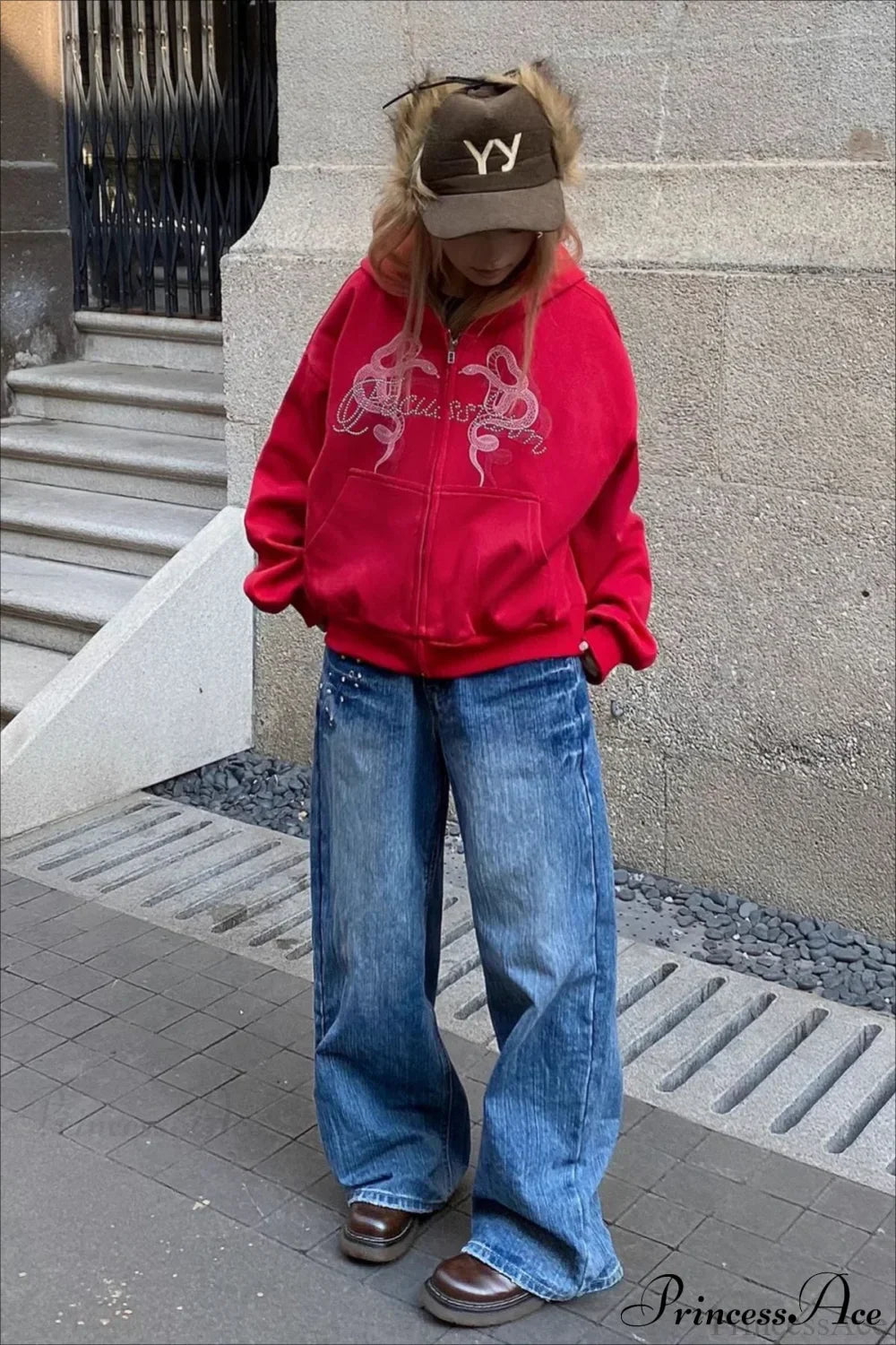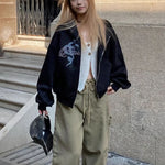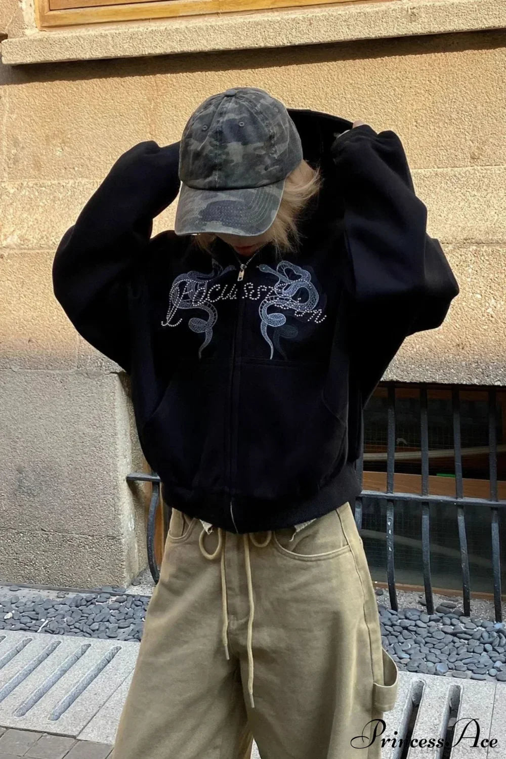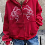 Kort hættetrøje med lynlås, slangeprint og rhinsten