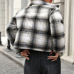 Kort, løstsiddende, alsidig ternet bomuldsfrakke
