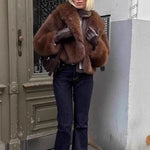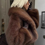 Retro-stil, ensfarvet, varm plysfrakke med hakkrave