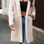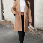 Lang, ensfarvet frakke i uldblanding