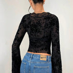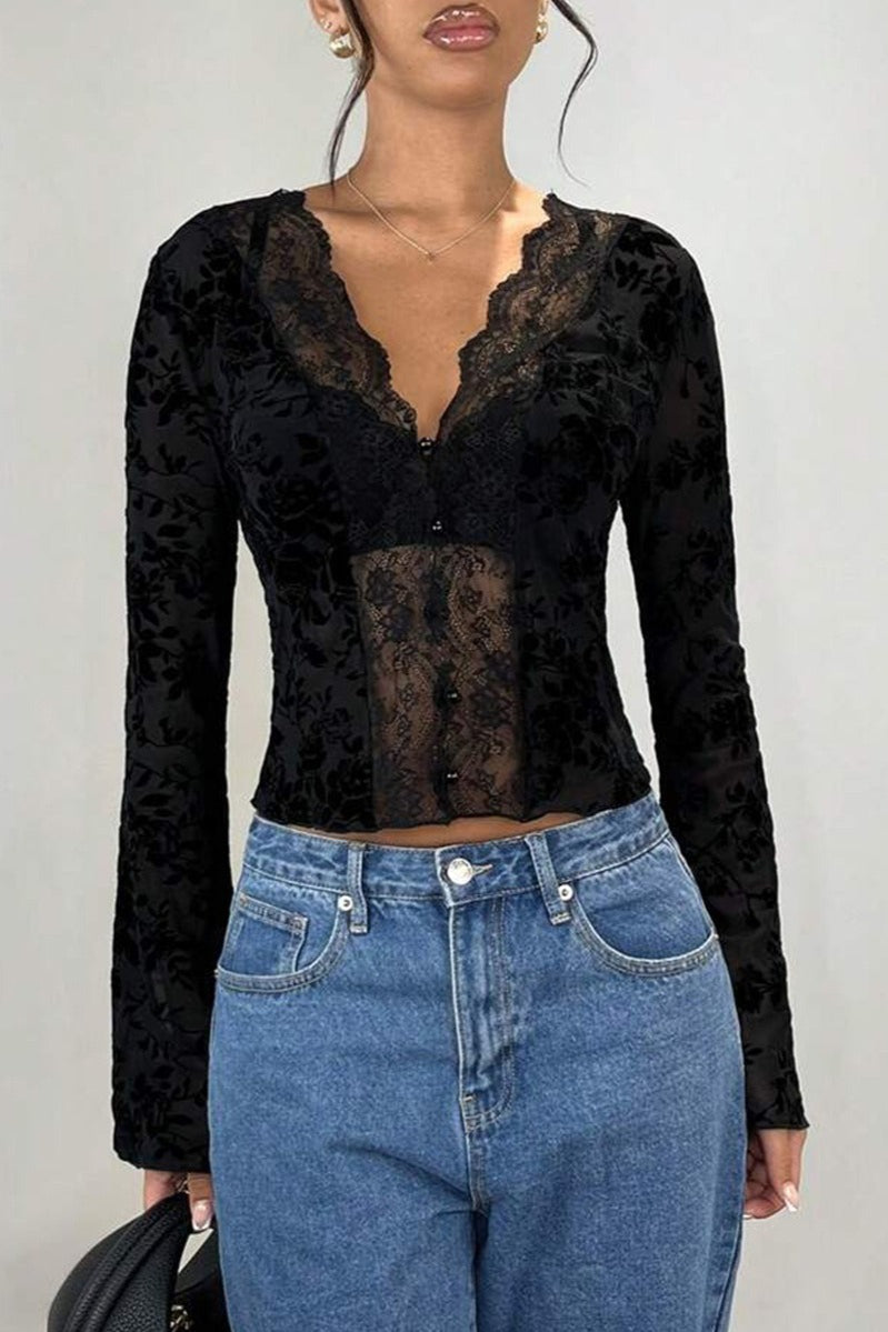 Leopardprintet cardiganbluse med flæser og blondeindsatser