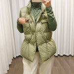 Omfavn elegant komfort og alsidighed med vores Olive Puffer Vest, en essentiel tilføjelse til din midtsæsongarderobe! Denne lette, men hyggelige vest har en justerbar talje, der fremhæver din figur, praktiske lommer med trykknapper til dine essentielle ting og et stilfuldt design med høj hals, der lover at holde kulden på afstand.
