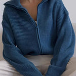 Ensfarvet løstsiddende cardigan med lynlås i manchetterne