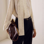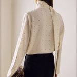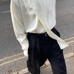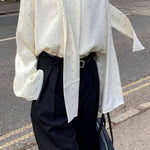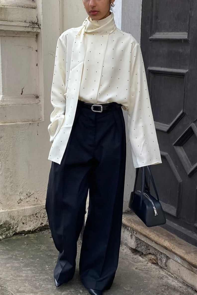 Løstsiddende bluse med polkaprikker og bånd, ideel til hverdagsbrug.