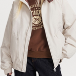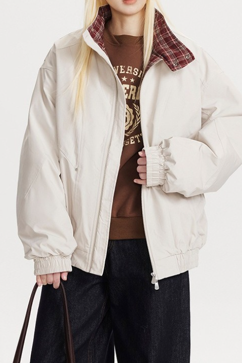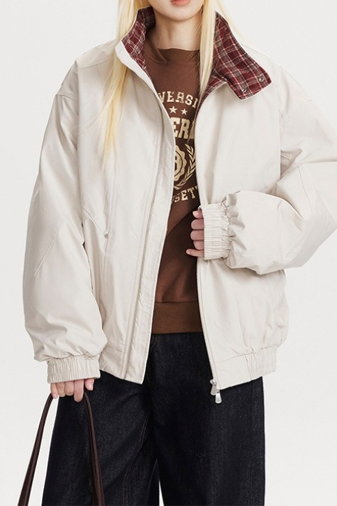 Overdimensioneret, varm jakke med vintage-ternmønster, opretstående krave og paneler