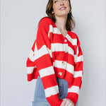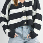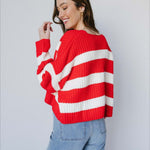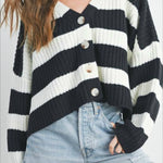 Stribet strikvest med bred V-hals og lange ærmer