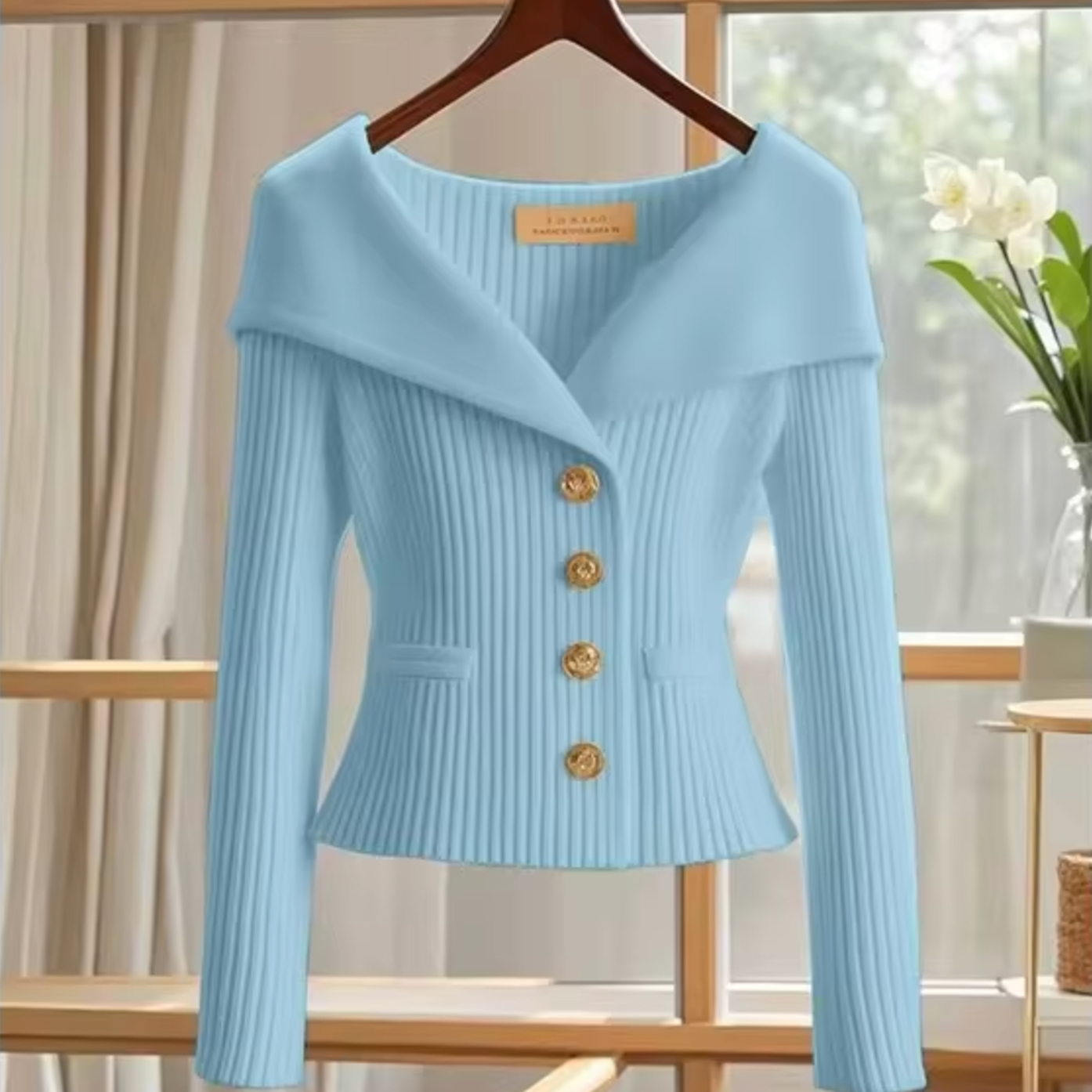 Kort cardigan til kvinder – Blød strik – Tætsiddende snit – Bred krave – Synlige knapper
