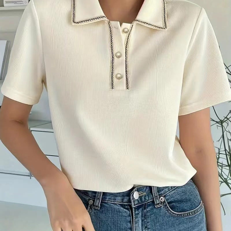 Damepoloshirt – Normal pasform – Korte ærmer – Dekorativ knapkrave