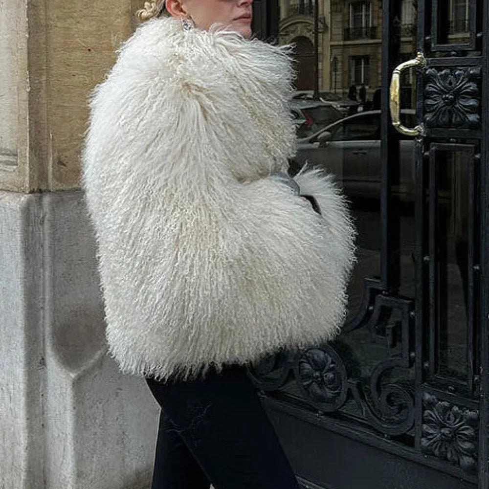 Varm kort jakke i imiteret vaskebjørnepels