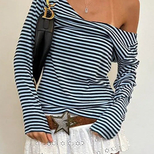 Langærmet, løstsiddende bluse med farveblok og V-hals