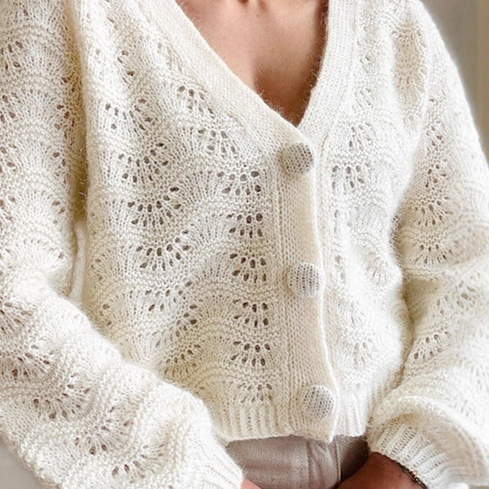 Løstsiddende, langærmet, enkeltradet strikcardigan