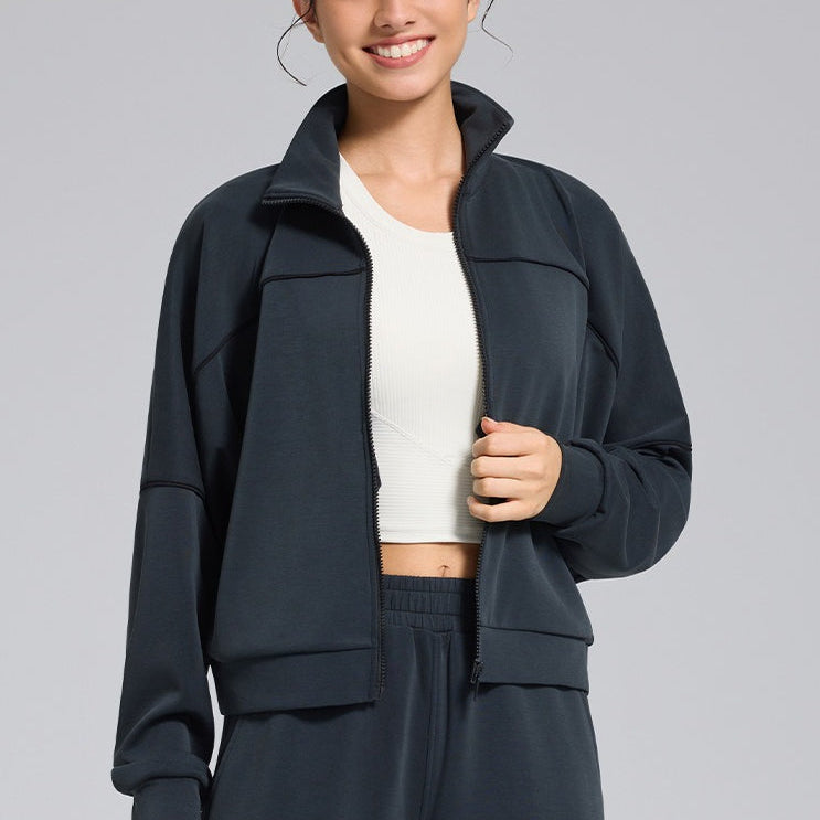 Løstsiddende sportsvest med lynlås til udendørs yoga, lange ærmer