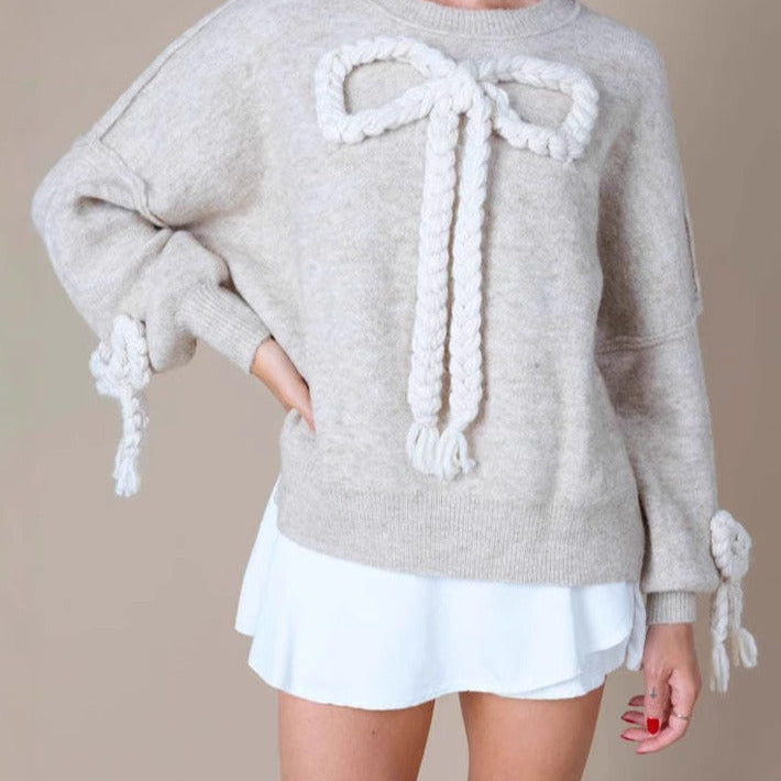 Oversized sweatshirt med paneler og 3D-sløjfe