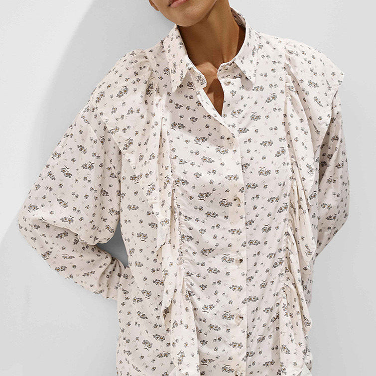 Dametunikabluse – Løs pasform – Blomsterprint – Luksuriøst stof – Knaplukning
