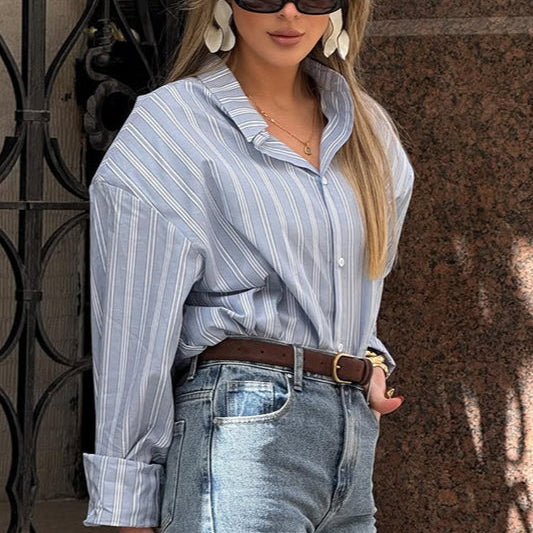 Dameskjorte – Afslappet pasform – Bomuldshør – Lange ærmer – Klassisk krave