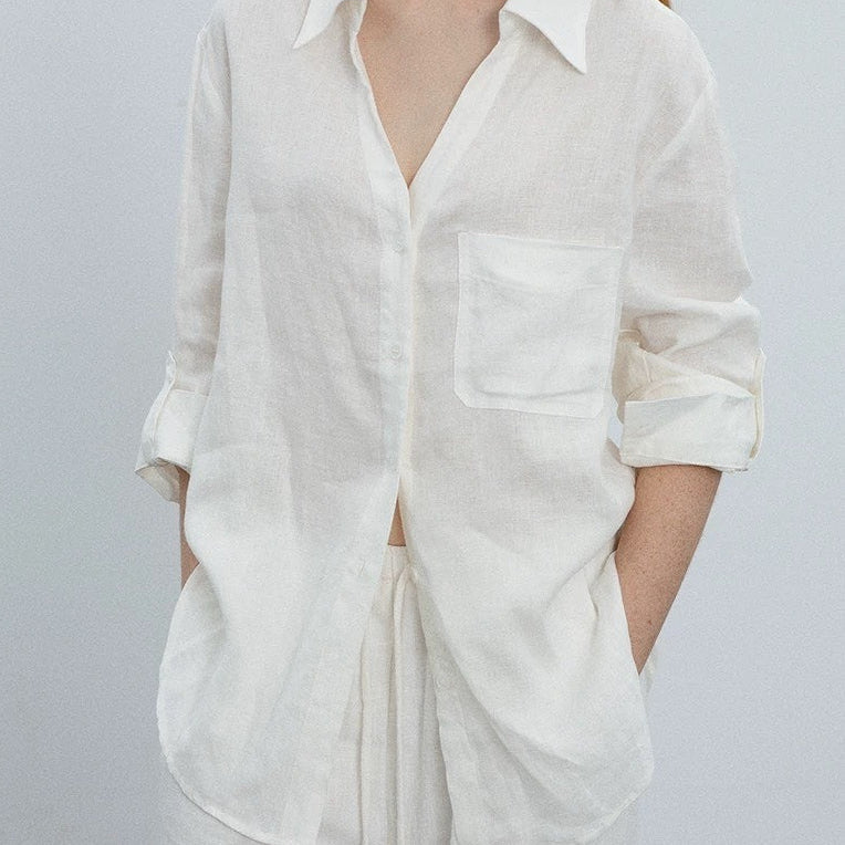 Løstsiddende hørbluse, minimalistisk og afslappet stil