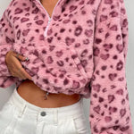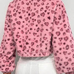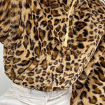Kort, luftig frakke med opretstående krave og halv lynlås i leopardprint