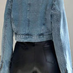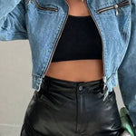 Trendy kort denimjakke med lynlås