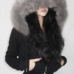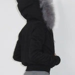 hættejakke med pelskant og lynlås i taljen