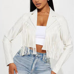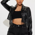 Kort jakke i imiteret læder med frynser