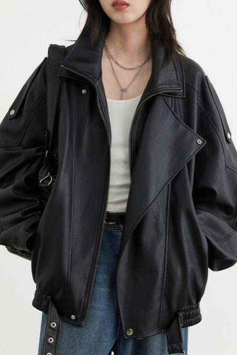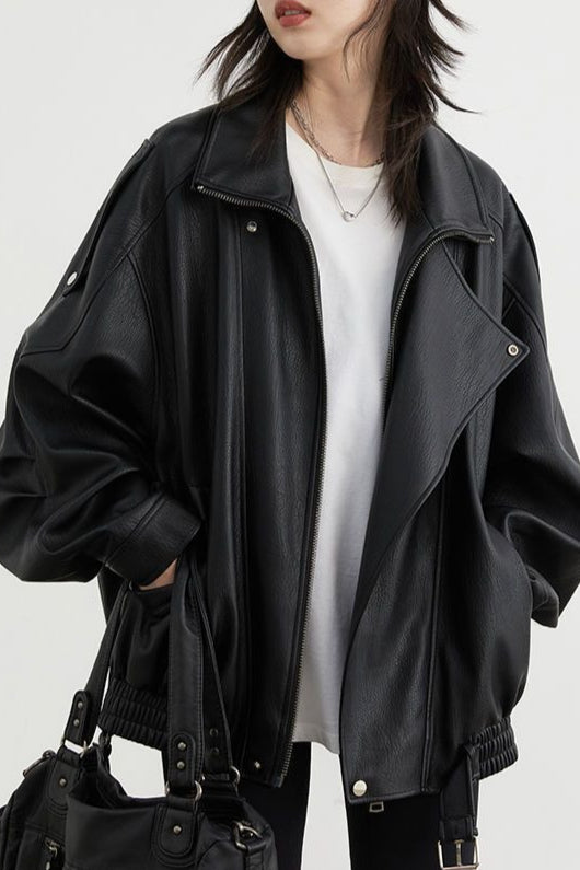 Oversized bikerjakke i læder