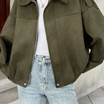 pilotjakke med ruskindslook-krave med hak