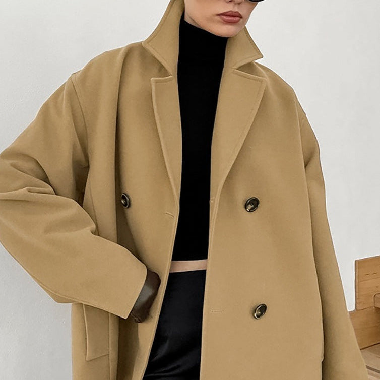 Overdimensioneret jakke med kraftig krave i uldblanding, ideel til pendling til arbejde