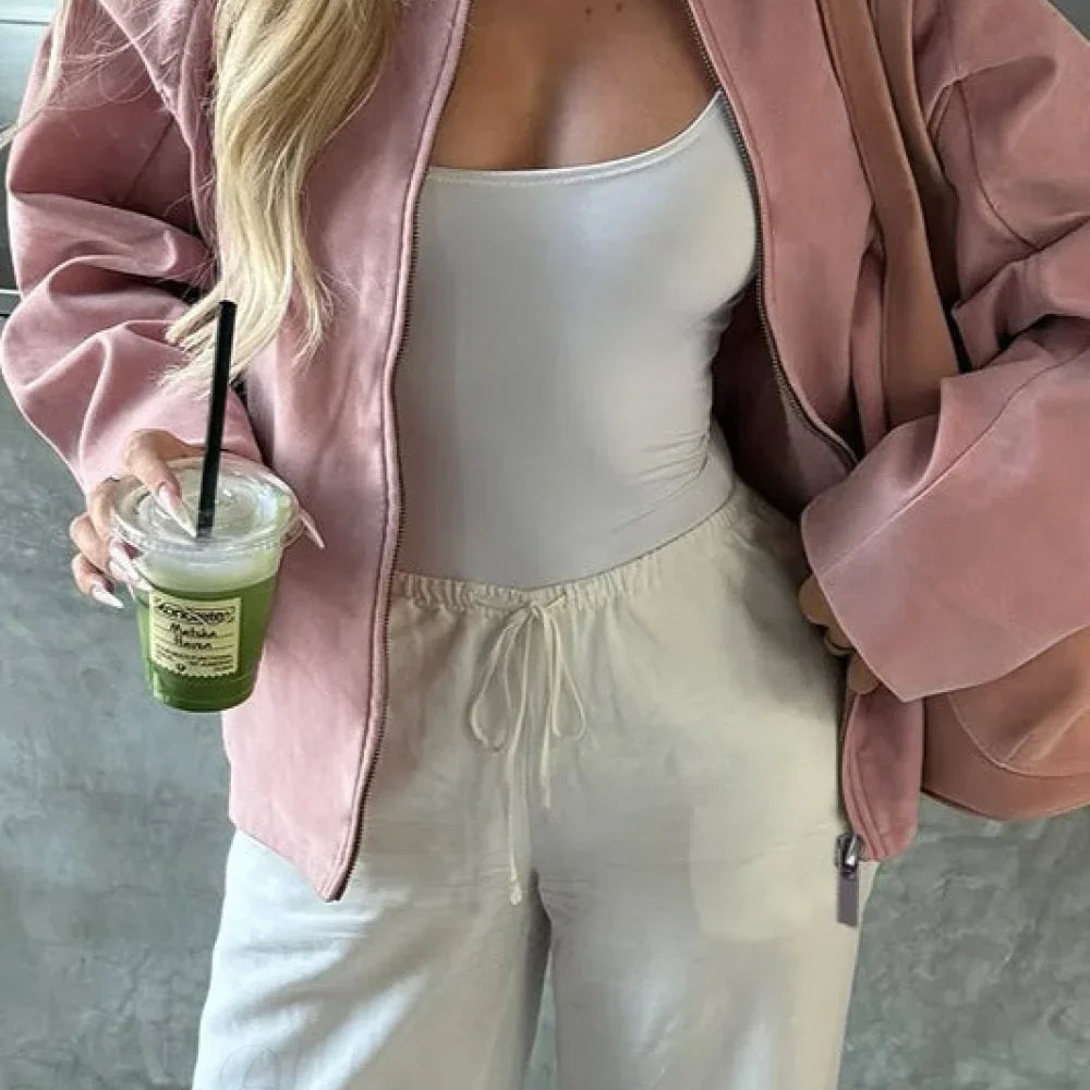Elegant, afslappet langærmet ruskindsjakke