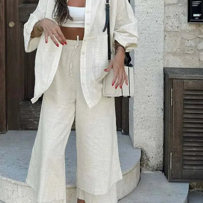 Todelt stribet skrivebordssæt i bomuld og hør med brede ben