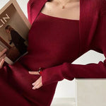 Maxikjole med firkantet halsudskæring i almindelig strik