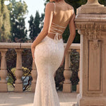 Sexet, figursyet maxikjole uden ryg med tynde stropper