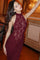 Sexet bodycon maxikjole i patchwork-blonder