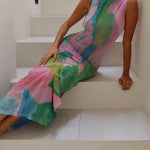Sexet ærmeløs rygløs midikjole, elegant og med slidser i siden