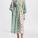 Elegant skjortekjole med print og pufærmer og charmerende