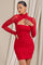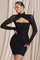 Bodycon minikjole med halterneck, off-shoulder design og lange ærmer