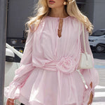 Sexet, ensfarvet mini bodycon-kjole med rund hals og blomsterprint