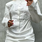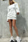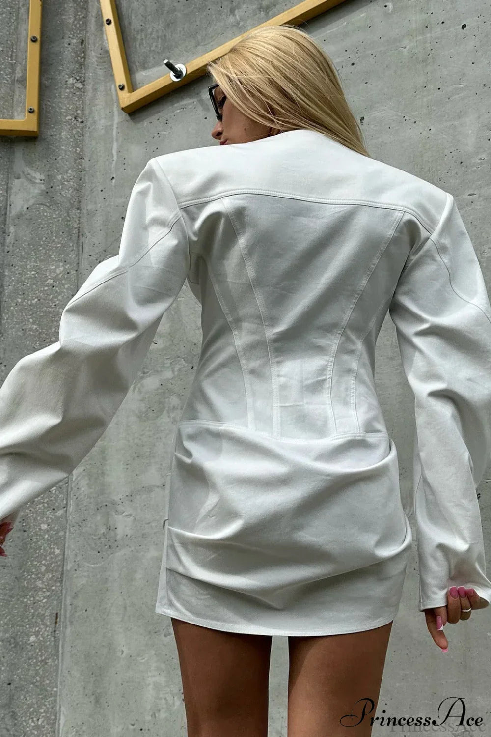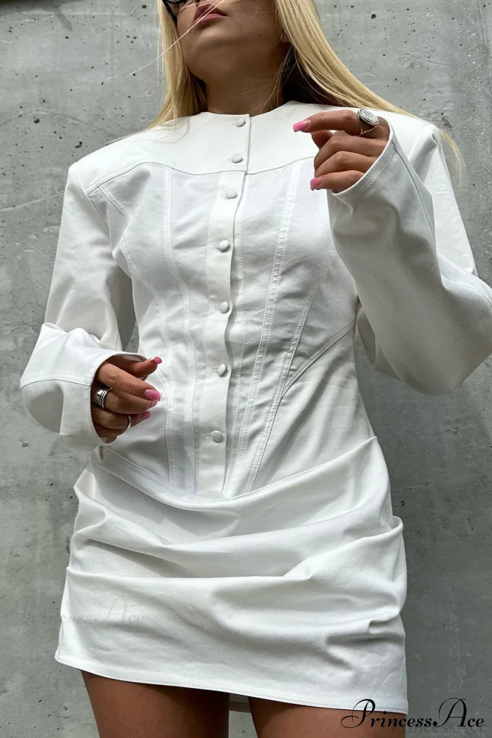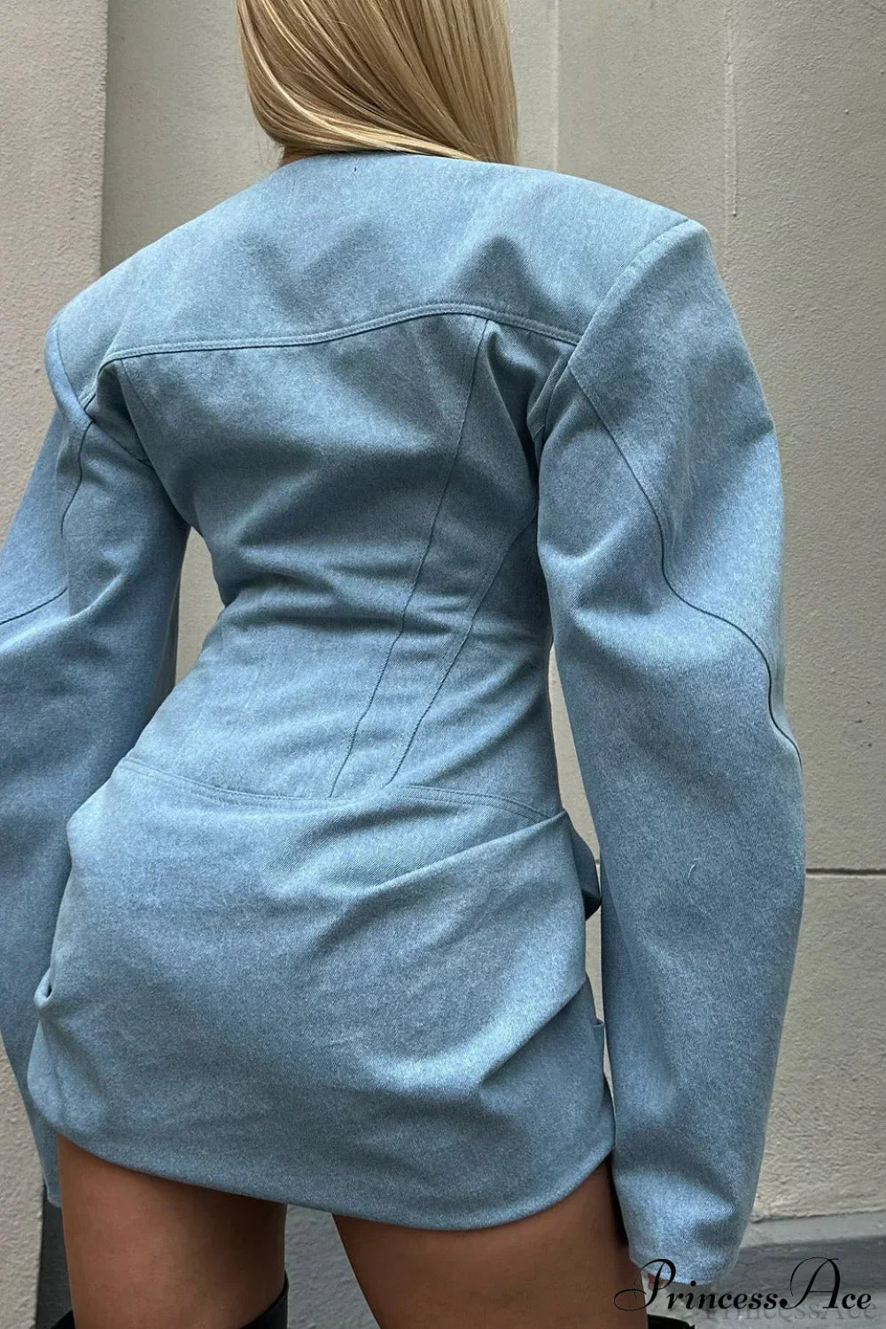Denim minikjole med polstrede skulderpuder og rund halsudskæring, bundet talje