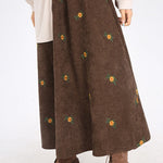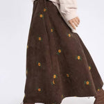 Trykt corduroy trapeznederdel