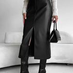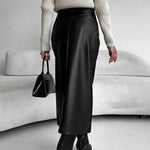 Vintage højtaljet lædernederdel med slids