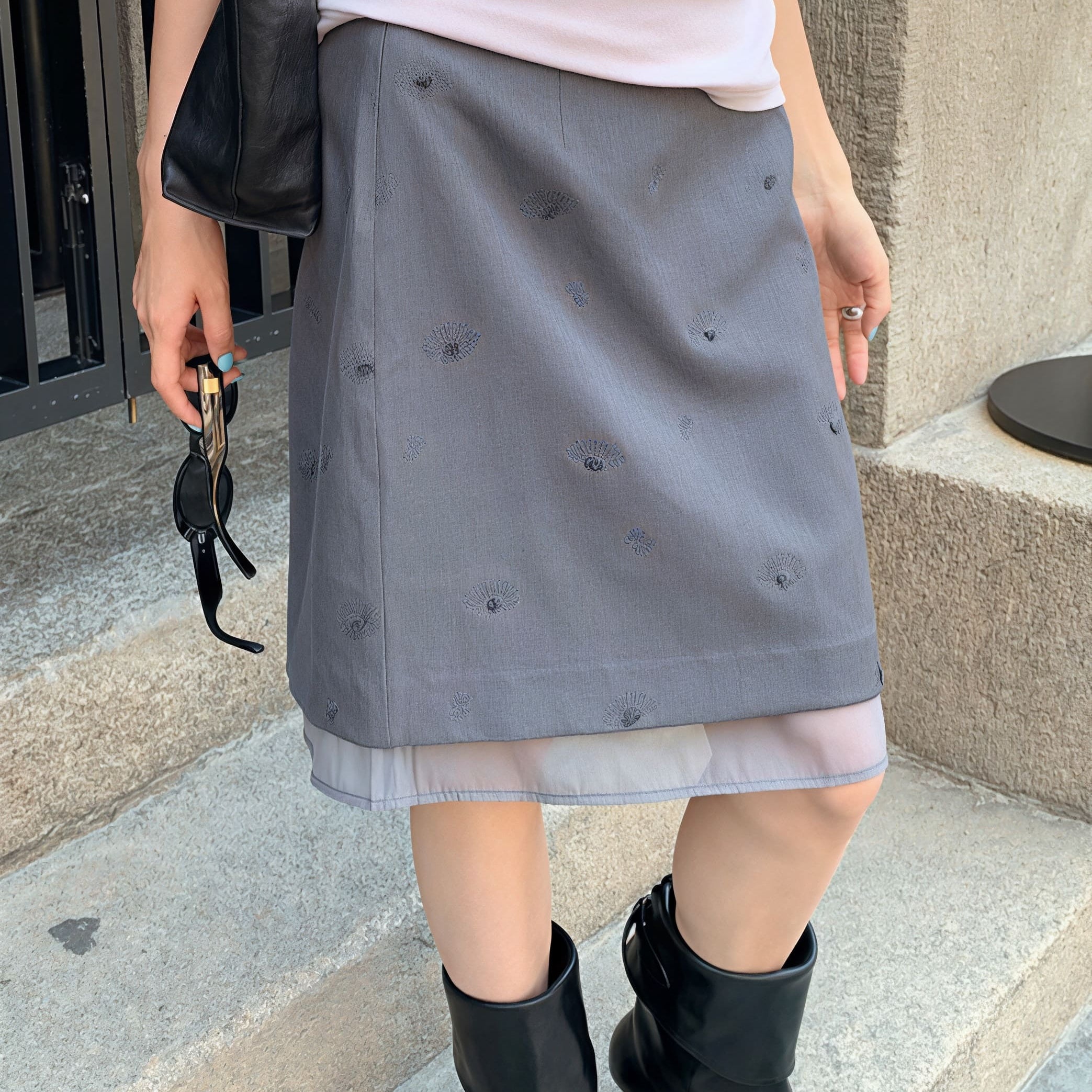 Sexet lang, gennemsigtig nederdel med blomsterprint og jacquard