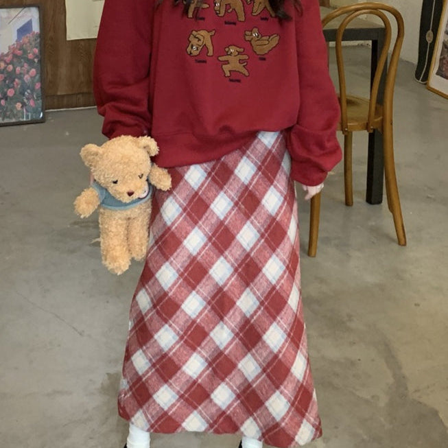 Lavtaljet ternet nederdel med broderi af bogstaver