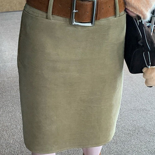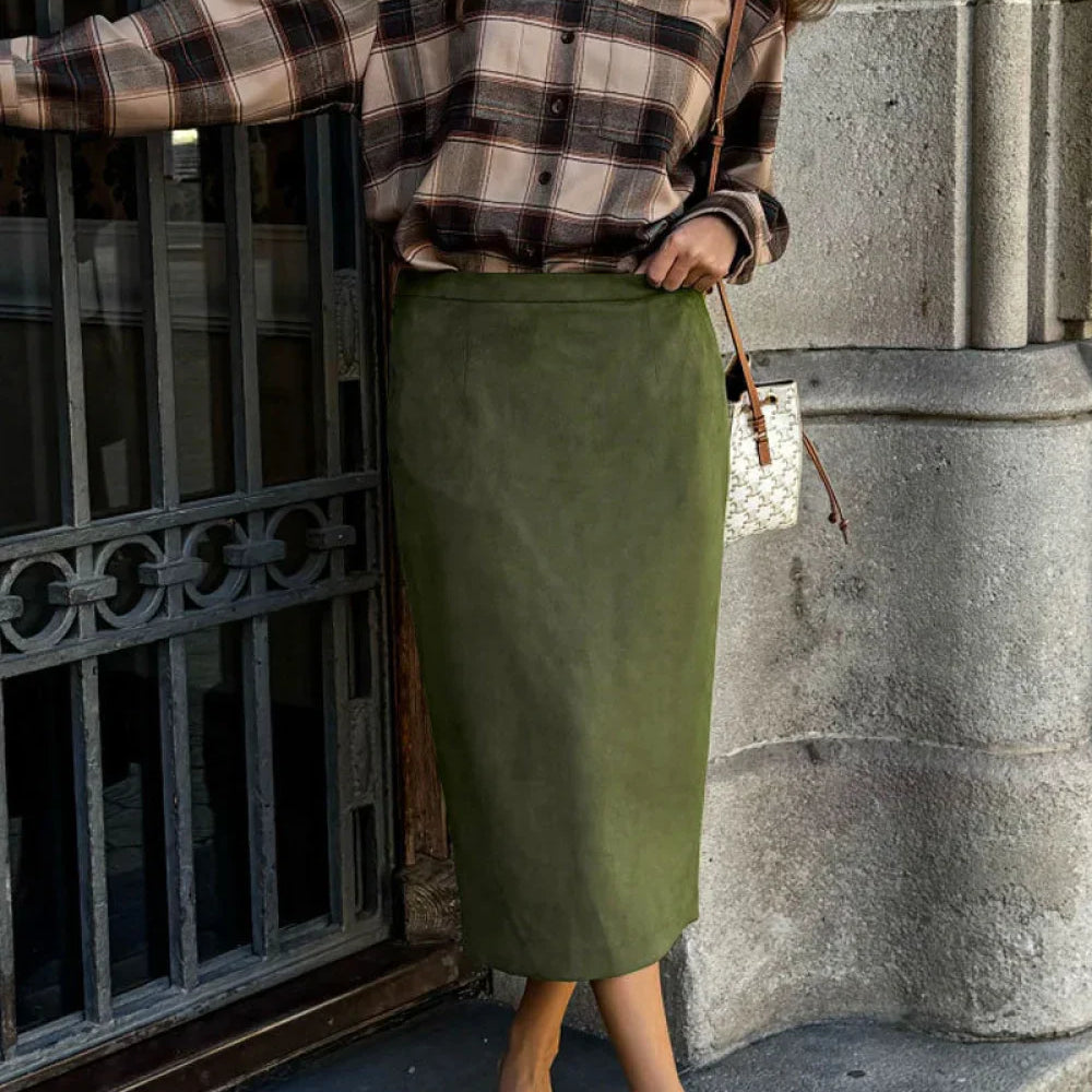 Retro lige nederdel i grønt ruskind