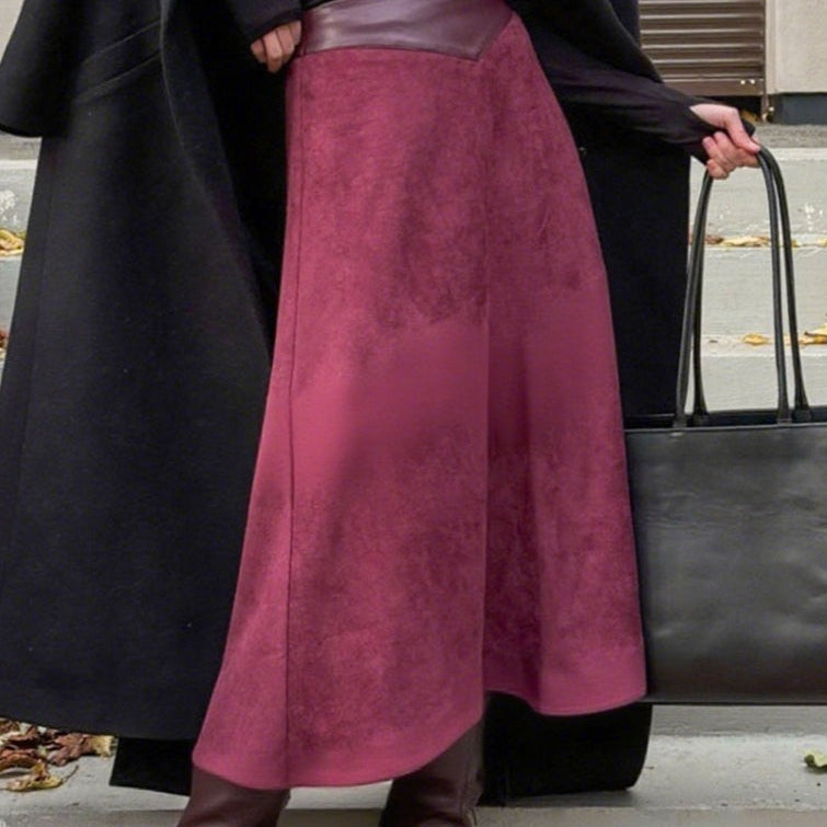 Vintage A-formet midi-nederdel i imiteret ruskind